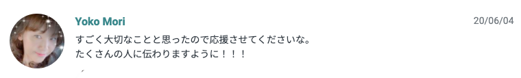 大変な世の中でこうした活動にご支援いただけたこと本当に心強くまた大きな大きな使命感を持つこともでき自分自身貴重な経験をさせていただきました。
