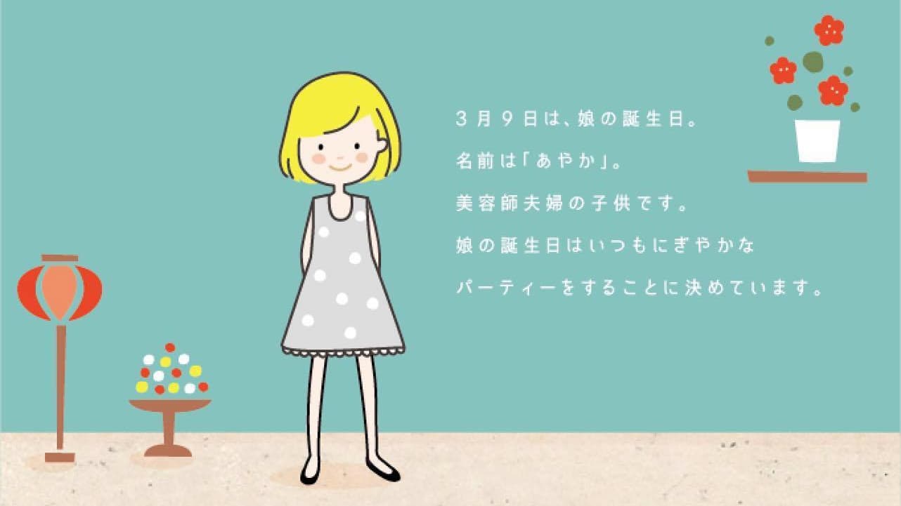 毎年3月9日の誕生日は、ひな壇の前で記念撮影をします。ひな壇の片付けをするときにいつもあるお客様のことを思い出します。